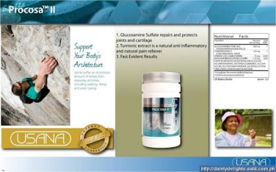 MENGAPA MEMILIH PROCOSA II™* PROCOSA II ™ merupakan formula bertindak segera bagi USANA untuk kesihatan sendi.* PROCOSA II™ telah diuji di makmal dan memenuhi spesifikasi USP untuk potensi, keseragaman dan